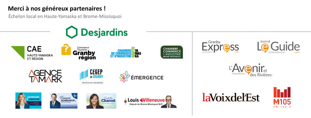 Si le Défi OSEntreprendre des MRC de La Haute-Yamaska et de Brome-Missisquoi, portés respectivement par Entrepreneuriat Haute-Yamaska et le CLD de Brome-Missisquoi, est devenu un incontournable pour propulser l’esprit d’entreprendre sur le terrain, c’est grâce à l’étroite collaboration des milieux entrepreneuriaux, en plus des nombreux collaborateurs et partenaires!